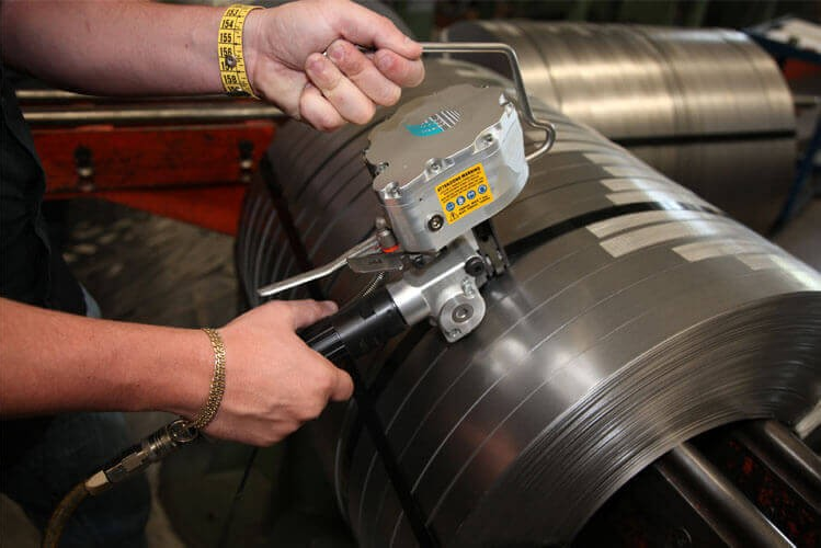 ITA40 氣動推扣式鋼帶打包機,適用于任何不規則物品的包裝,多種規格款式可以選擇,重量只有4kg操作便利,采用瑞典Atlas Copco氣動馬達,束緊力達到7,500N為業界之最。適合鋼卷、鋁卷、盤元、線材等圓形或不規則形物的包裝。