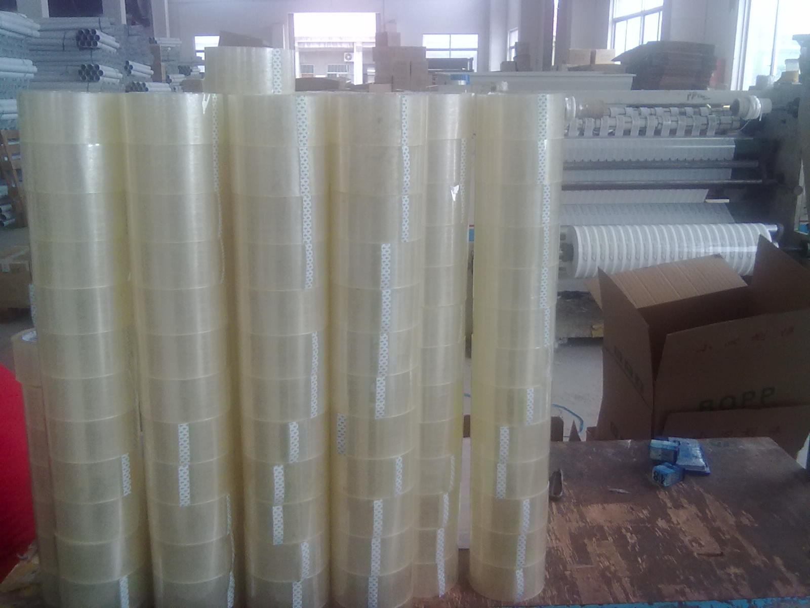封箱膠粘帶是以聚丙烯薄膜(BOPP)為基材,涂以丙烯酸脂壓敏膠制造而成。具有質(zhì)輕、成本低、抗拉伸等優(yōu)點,也適用于自動包裝封箱機。